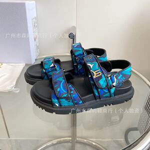2024年新作Dファミリーハイバージョンベルクロ増厚ソールバックストラップメタルバックルワンラインビーチサンダル男女兼用
