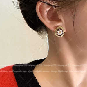 アンコラレッドレトロ香港スタイルイヤークリップピアスなしフェミニンハイエンドパールイヤリング2025新しいイヤリング