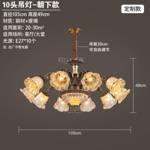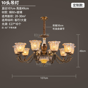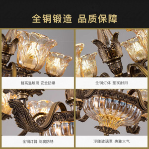 新しいアメリカンシャンデリア、全銅リビングルームランプ、ヨーロピアンスタイルのダイニングルームランプ、ベッドルームランプ、モダンでシンプルで雰囲気のあるレトロなランプ
