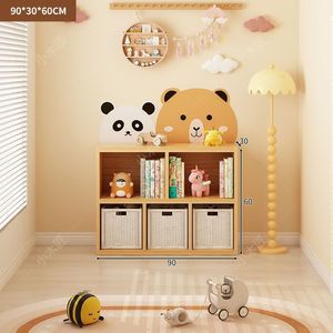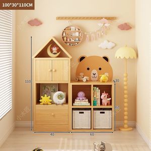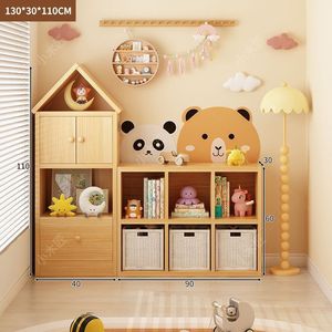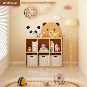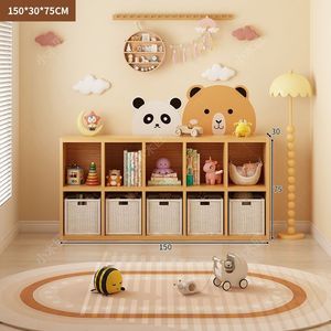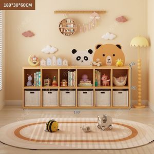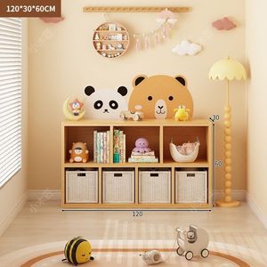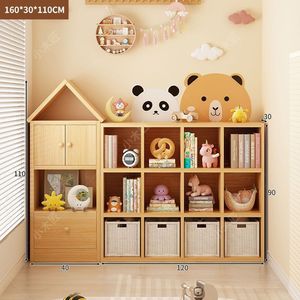 無垢材子供用本棚収納ラック床置きおもちゃ収納低本棚収納キャビネットリビングルーム格子キャビネット絵本ラック