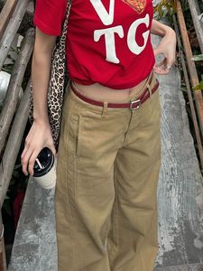 アメリカンハイストリートカーキワイドレッグジーンズレディースハイウエストルーズスリムカジュアル万能ストレートワークウェアロングパンツ