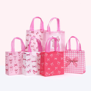 パーティー不織布袋卸売り蝶結びプリントギフト袋立体覇膜袋ショッピング手提げ外販売袋