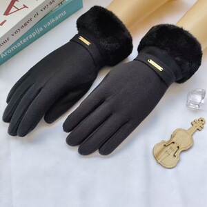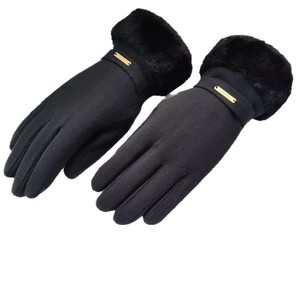 冬季新款时尚纯色保暖加厚手套户外骑行防风毛绒口开车防寒手套