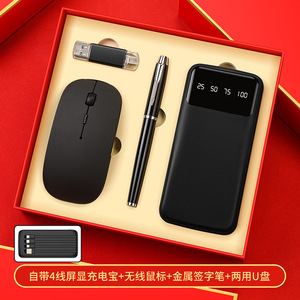ブラック 4 点セット/10000mAh には 4 線式パワーバンク + ラウンドマウス + ペン + U ディスク + ギフトボックスとギフトバッグが付属します