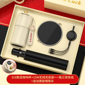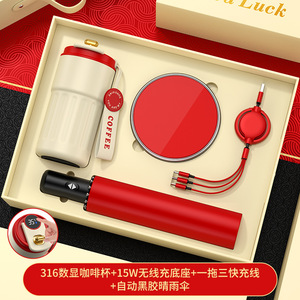 4点セット/316レッドコーヒーカップ+ワイヤレス充電+データケーブル+傘+ギフトボックスギフトバッグ
