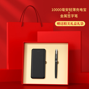 2 個セット/ブラック WJ02 パワーバンク 10,000 mAh + ペン + レッド ギフトボックス ギフトバッグ