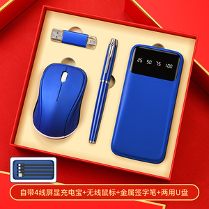 ブルー 4 点セット/10000mAh には 4 線式パワーバンク + マウス + ペン + U ディスク + ギフトボックスとギフトバッグが付属します