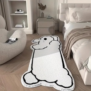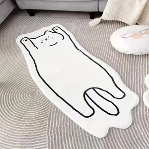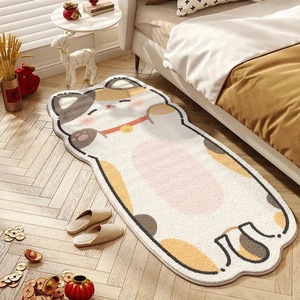漫画かわいい子猫の部屋の寝室はベルベットのベッドの上にカーペットを飾っています。
