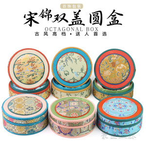 国风宋锦首饰盒圆盒珠宝首饰手串手镯盒首饰收纳包装盒送人礼品盒