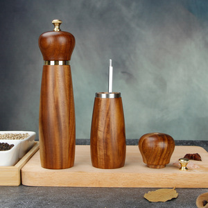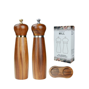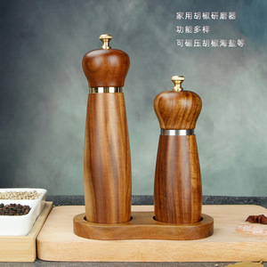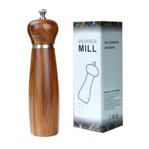 木製ペッパーグラインダー、スチールリングペッパー、海塩、スパイスグラインダー、セラミックコアグラインダー、無垢材スパイスボトル