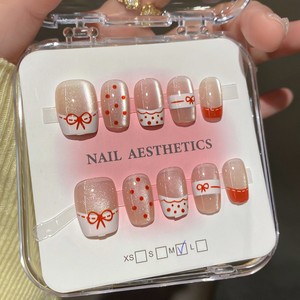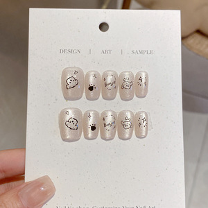 フレンチキャットアイ、キュートでフレッシュ、手作りのウェアラブルネイルコレクション、ネイルアートパッチ、フェイクネイル、取り外し可能な完成品、光療法