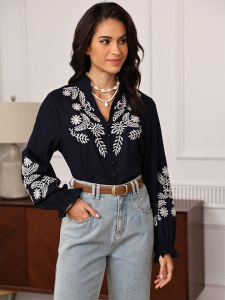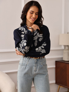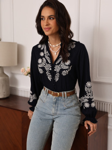 フレンチニッチエレガントなヘビーウェイト刺繍シャツレディース長袖Vネック花柄刺繍レディースシャツ夏の新スタイル