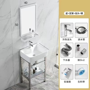 卫生间小户洗手盆落地式台盆洗手池支架不锈钢挂墙式洗脸盆柜组合
