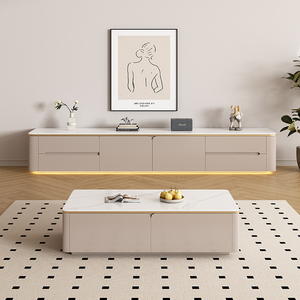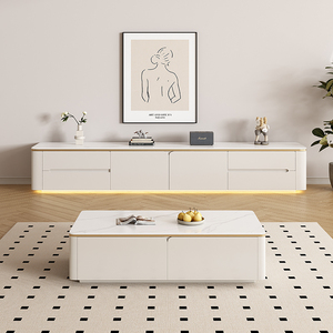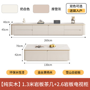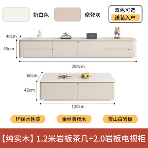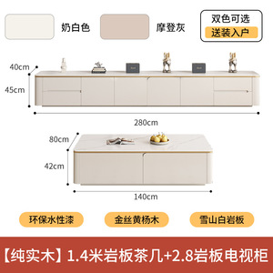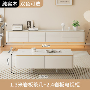 全無垢材のスレートテレビキャビネットとコーヒーテーブルの組み合わせ、モダンでシンプルな小さなリビングルーム、軽くて豪華なハイエンドの床置き収納キャビネット