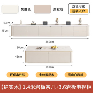 [純無垢材] ロックスラブコーヒーテーブル 1.4m 個 + ロックスラブテレビキャビネット高さ 45cm 3.6m 個