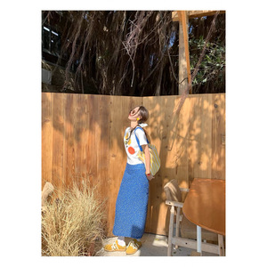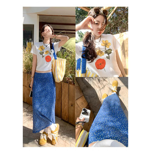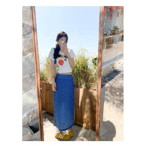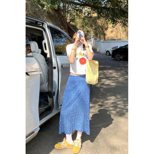 ブルー花柄スカート女性の夏の気質スカートバックスリットヒップカバーロングスカート 2025 新しいスタイル