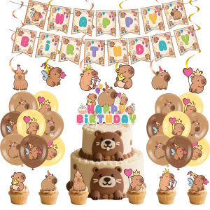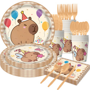 新しいカピバラテーマボーイズパーティー使い捨て紙皿紙コップティッシュテーブルクロスフラッグセット装飾
