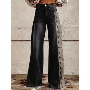 独立したサイト Xiyin Shopee 2024 新しい 3D 熱転写フレアパンツ模擬デニムパンツルーズパンツ