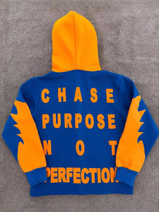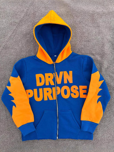 2025 新しいクロスボーダー黄色と青のステッチ文字発泡炎プリントルーズジッパーパーカースウェットシャツ