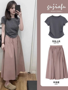 プラスサイズファットmmサマースーツ、ファッショナブル、年齢軽減、痩身、ファッショナブルな右肩スカート、夏気質ツーピースセット100kg