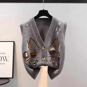 ニットベスト 2025 春と秋の新作アウターレディースセーター韓国風ファッションジャケット刺繍ノースリーブカーディガン
