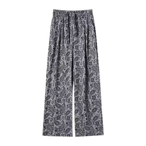 夏の女性向けの新しいレトロプリントワイドレッグパンツ、レイジーハイウエスト、ゆったり、スリム、ストレートレッグ、ポケットなしパンツ
