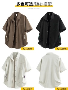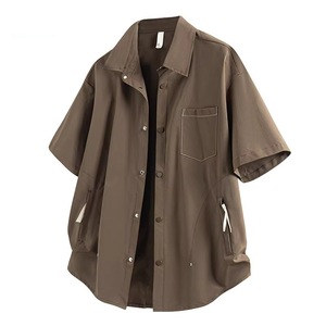 日系工装半袖シャツ男性モデル2025年新夏襟付き通気性のあるごろつきのハンサムなシャツのファッション