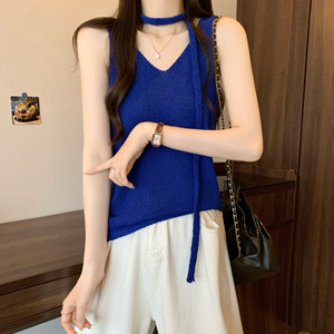 新しいフレンチVネックスリムホットガールスリムフィットノースリーブニットベストサスペンダー