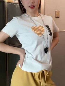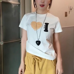 アメリカンレトロラブホワイト半袖Tシャツレディース2025年夏新デザインニッチ甘辛スリムフィットトップ