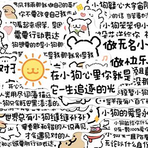 116张线条小狗文案励志贴纸治愈可爱卡通装饰手机手账桌面防水贴