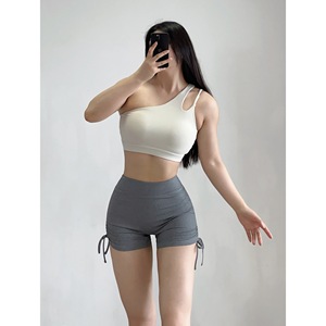 女性用スレッドストラップヨガウェア、ライクラ強力脚長ヨガショーツ、プリーツ痩身ヒップスポーツショーツ 1781