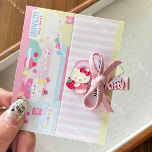 アニメの可愛い新作の猫の蝶結びのサイドに優雅な気質の少女の心を挟みます。