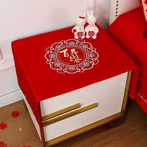 結婚式のベッドサイドテーブルダストカバー布結婚式の部屋赤お祝い装飾アレンジメントコーヒーテーブルテーブルクロス結婚式のハッピーワードカバー