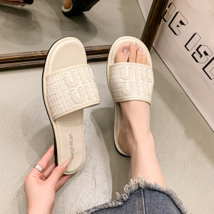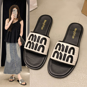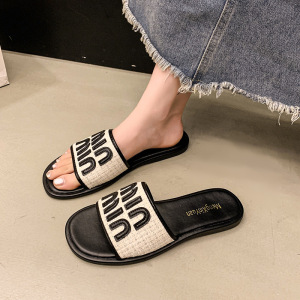 平底小香风一字拖鞋女鞋子2025年新款夏季外穿法式小凉拖沙滩凉鞋