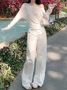 「レイジーショルダーT」はとても簡単で美しいです! 100 テンセルレーザー不規則なカットの女性用長袖 T シャツ