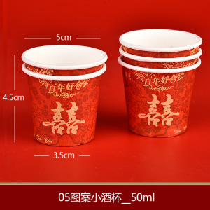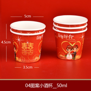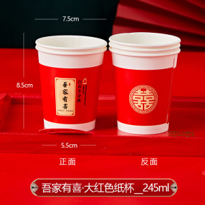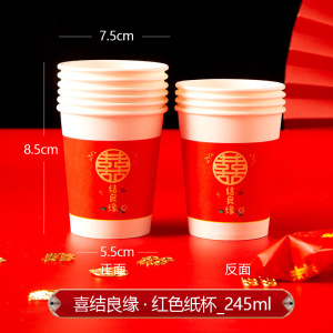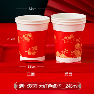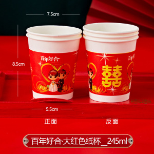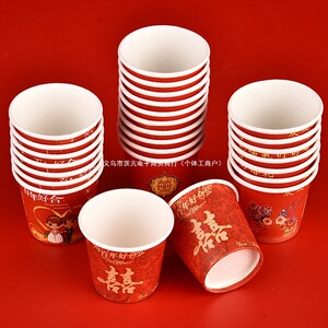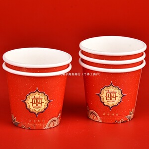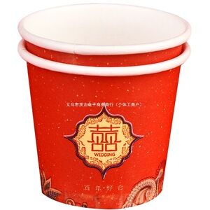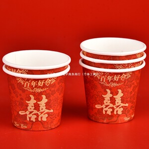結婚の使い捨ての小さい口の杯の赤い喜字の敬茶のコップは家庭の小さいサイズの敬酒の紙のコップの熊を厚くします。