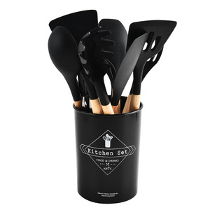 爆発クロスボーダー木製ハンドル再版シリコンキッチン用品12点セット増粘収納バレルマルチカラーオプションシリコンキッチン用品セット