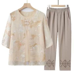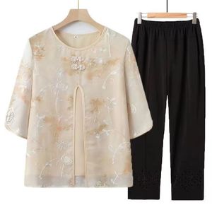 2025夏 七分袖中高年女性夏スーツ マザーズウェア 老婦人中袖2点セット