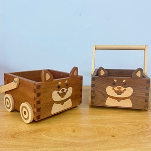 無垢材柴犬バスケットブラックウォールナットクリエイティブかわいい子犬収納バスケット雑貨美容収納収納ボックス