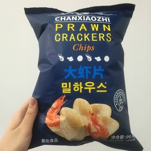 Chanyaoxiaozi 99.9g オリジナルエビチップス 袋入り 子供用 オフィス レジャー ドラマ鑑賞 エビチップス スナック バッチ。