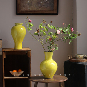 新しい中国風のレトロな高価値セラミック花瓶、ハイエンドのリビングルーム、B&B、ティールーム、クラブテーブル、水耕栽培フラワーアレンジメント