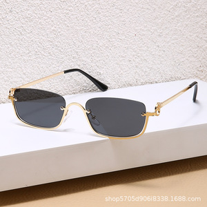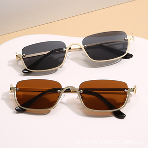 新しい 2025 ヨーロッパとアメリカのスモールフレームサングラススクエアハイエンド抗 UV サングラス女性のファッションハーフフレームサンバイザー