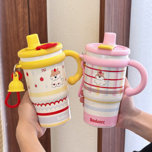 高颜値女子セラミックコーティング内胆大容量デスクトップカップ保温カップストローカップ保冷コーヒーカップ
