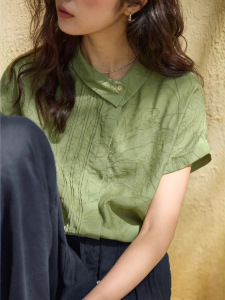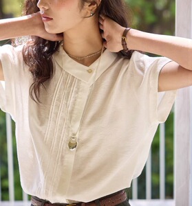 【新商品期間限定5% off】ソライター フレンチリネンジャガード アシンメトリーラペル半袖シャツ レディース