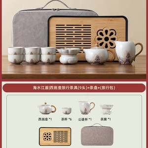 留窯海浪丨西施急須茶器セット【トレー付き収納袋】