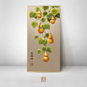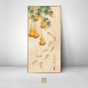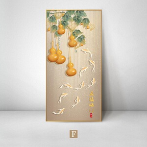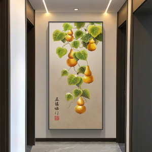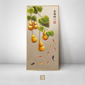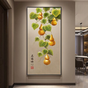 ひょうたん玄関吊り絵、五福絵、モダンライトラグジュアリー、高級玄関ドア、壁正面、新中国風装飾絵画