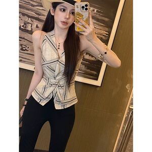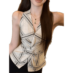 リラックスしたオールドマネースタイルの女性用サマーベスト、ツイストVネックノースリーブトップスイン
