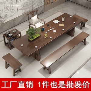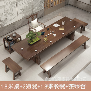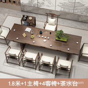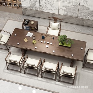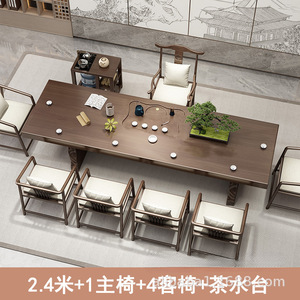 新しい中国風の無垢材の大きなボードのティーテーブルと椅子の組み合わせ、ホームオフィスの受付カンフーティーテーブルと椅子の完全なセット