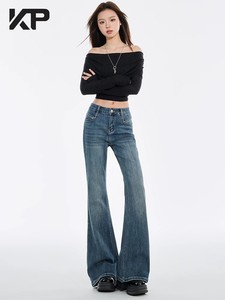 女性用マイクロフレアストレートジーンズ2025夏プラスサイズファットmmハイウエスト弾性カバー股痩身馬蹄フレアパンツ