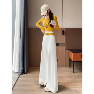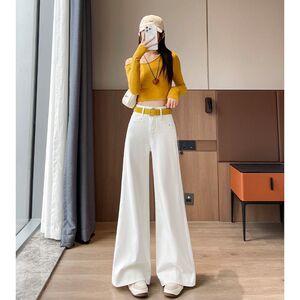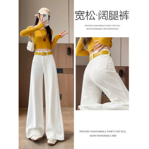 春夏の女性用白いハイウエストワイドレッグジーンズ、新しいスタイル、ゆったり、スリム、肉感カバー、フロアレングスパンツ